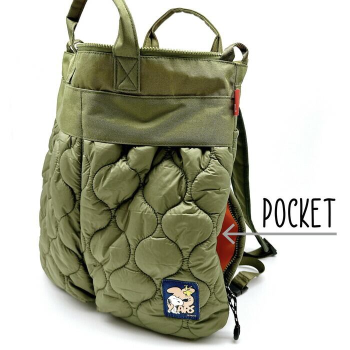 ・前面のふっくら大きめポケットがキャッチーな2way「セオルー」。トートでもリュックでも、お出かけシーンに合わせて使い分け。A4サイズが余裕で入ります。