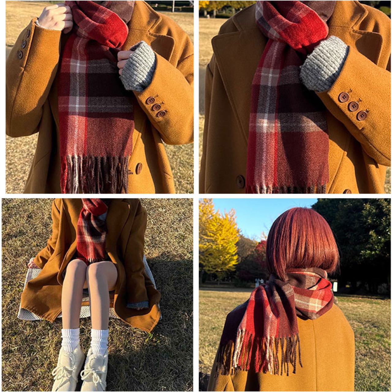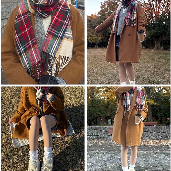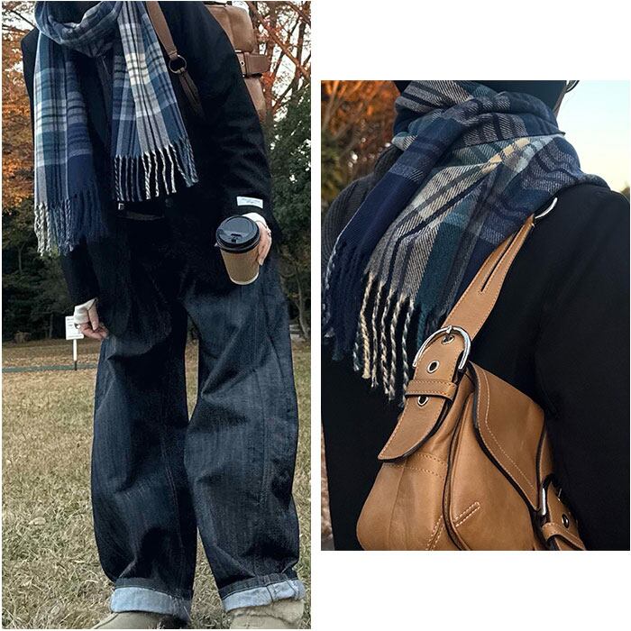 ・トラッド感のあるチェック柄が、冬の装いに華やかさとあたたかみをプラス。