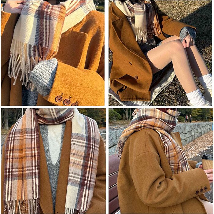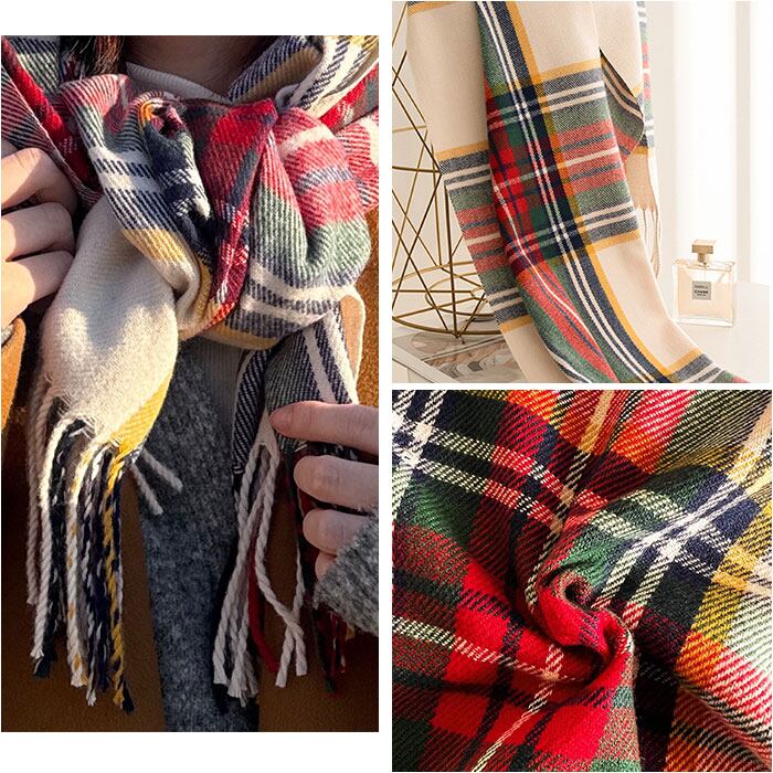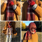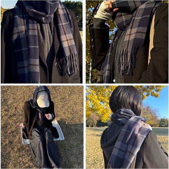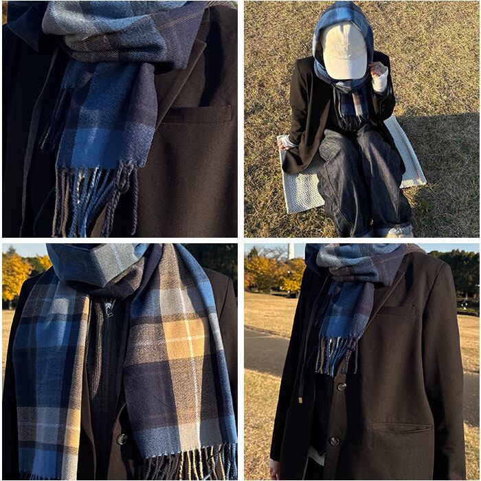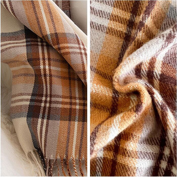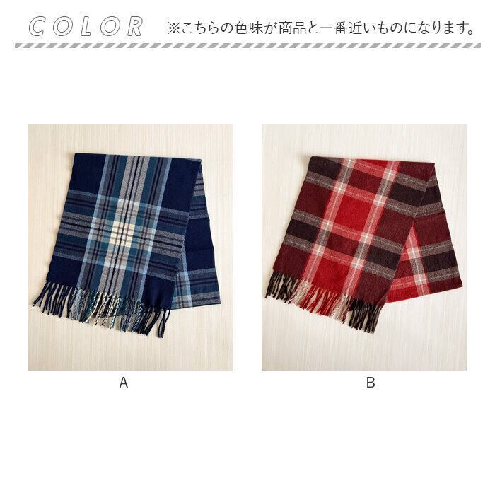 ・ふんわり柔らかな肌触りが魅力のカシミヤタッチチェックマフラー。
