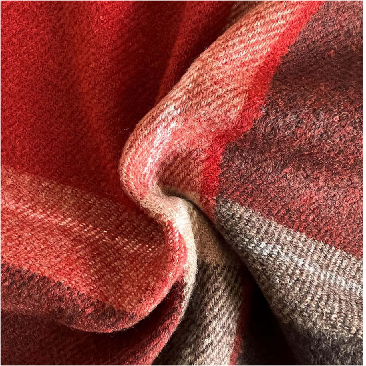 ※フリンジ部分の長さには個体差がございます。特に端部分は織り終わりの位置により、短めに仕上がる場合がございますが、製造工程上避けられない仕様となります。デザイン上の風合いとしてご理解いただけますと幸いです。