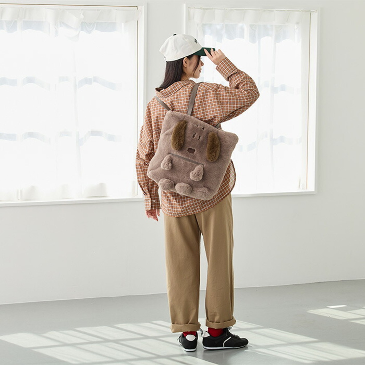 ・背面の大きめルーポケットには、背中のブチ模様とかわいいしっぽのデザインもしっかり再現されています。