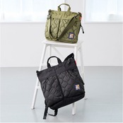・すぐに取り出したい持ち物は、外ポケットに。キルティング加工の大きめ前面ポケットは、プラホック開閉。
