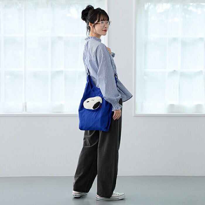 ・スヌーピーフェイスのポケットがポイントのショッパーバッグ。