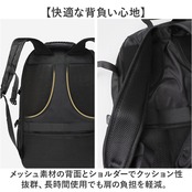 ・メッシュ素材の背面とショルダーでクッション性抜群、長時間使用でも肩の負担を軽減。