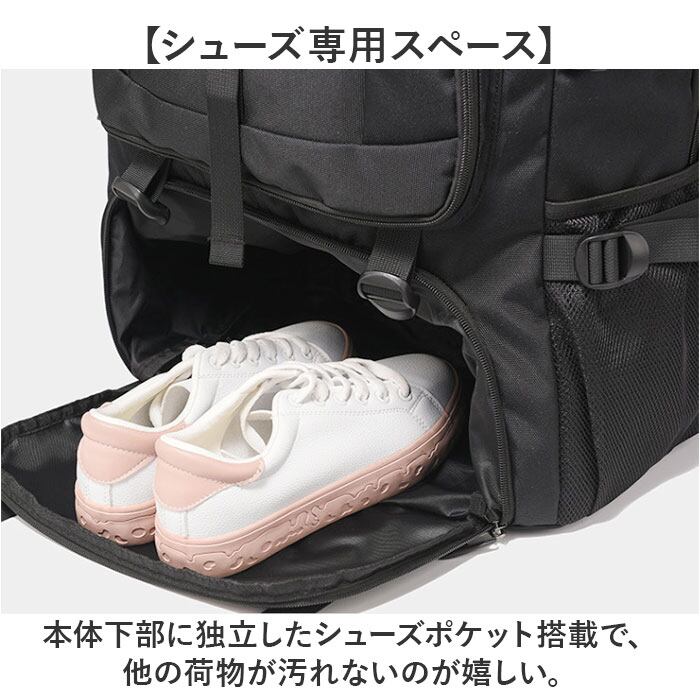 ・本体下部に独立したシューズポケット搭載で、他の荷物が汚れないのが嬉しい。