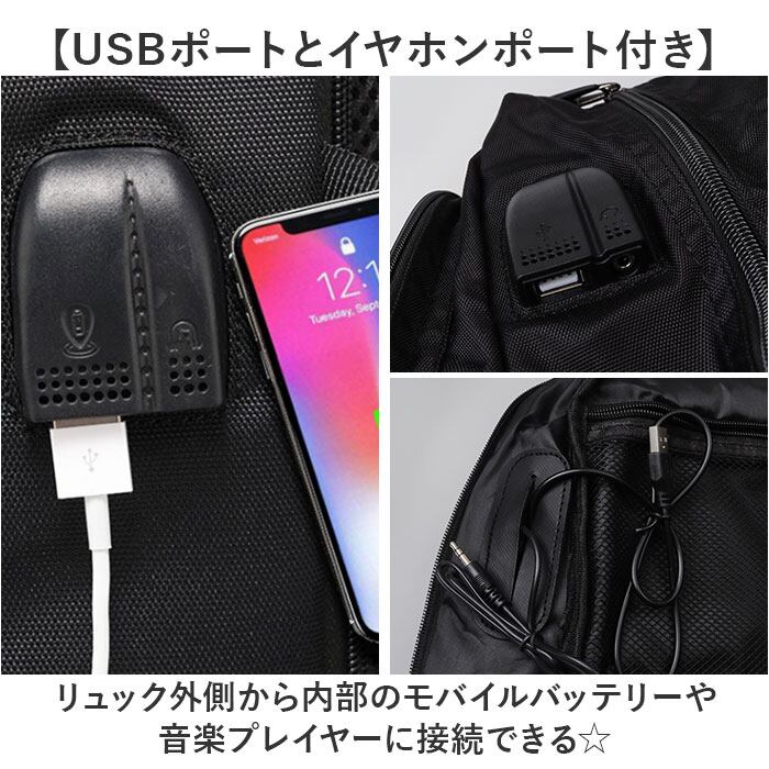 ・リュック外側から内部のモバイルバッテリーや音楽プレイヤーに接続できる☆