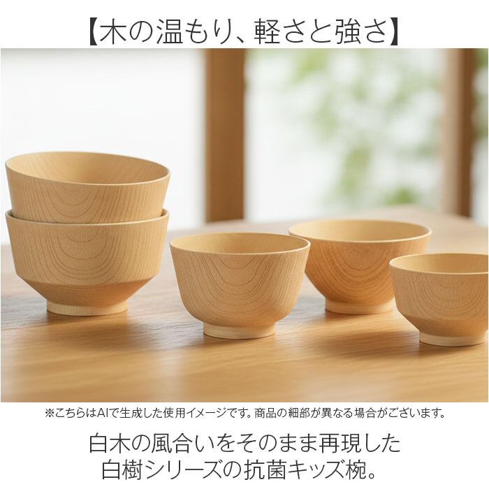 ・白木の風合いをそのまま再現した白樹シリーズの抗菌キッズ椀。