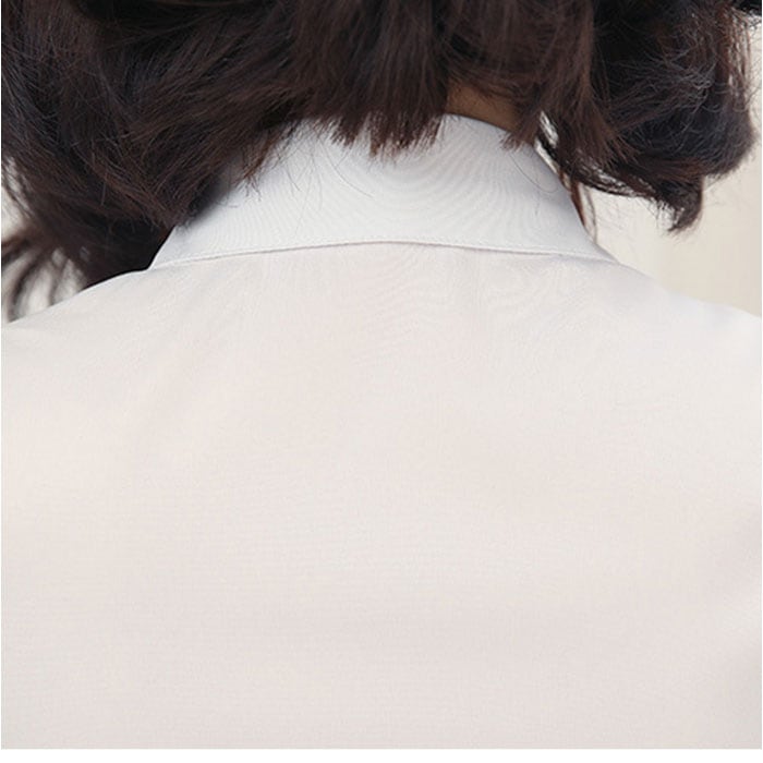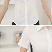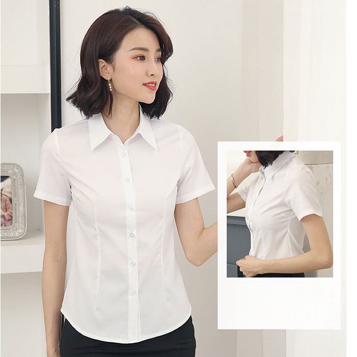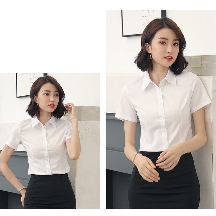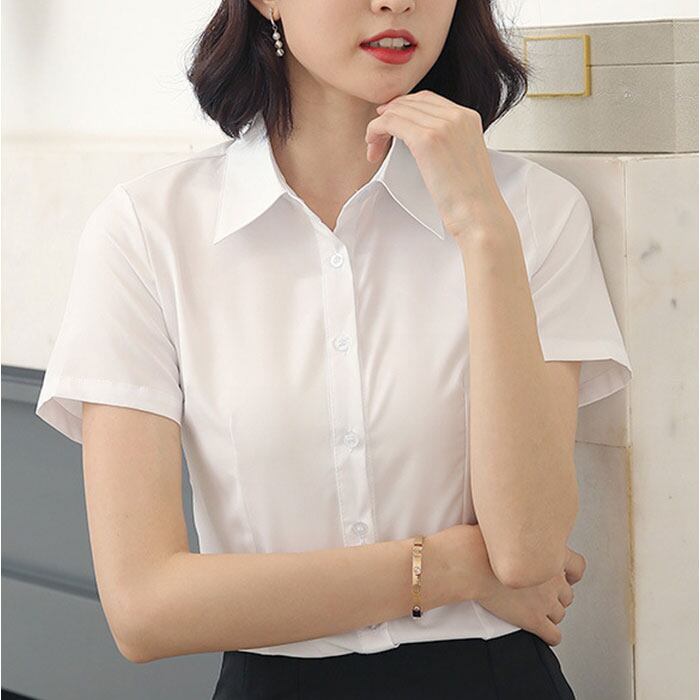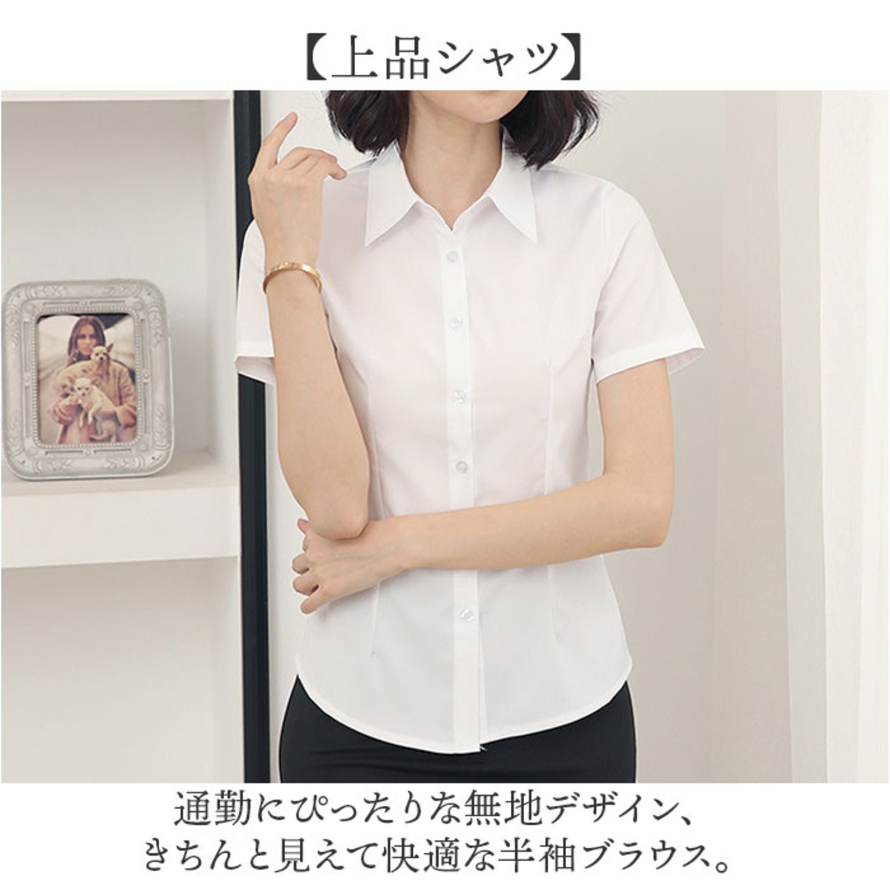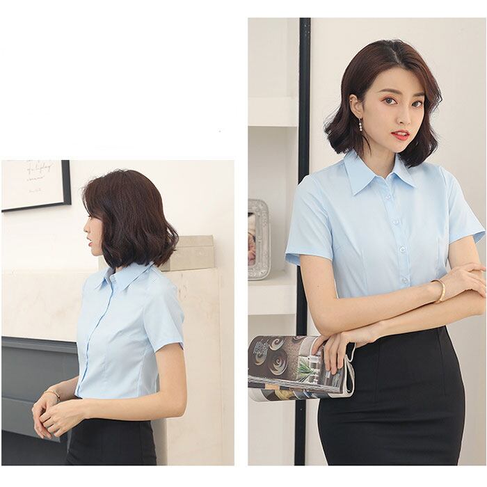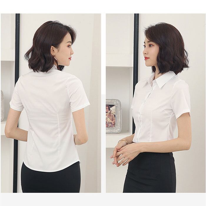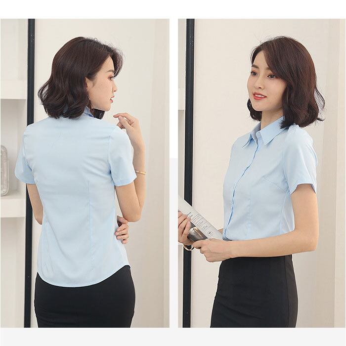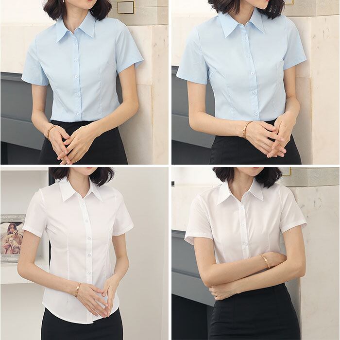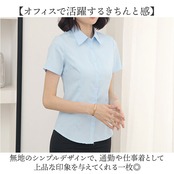 ・通勤にぴったりな無地デザイン、きちんと見えて快適な半袖ブラウス。