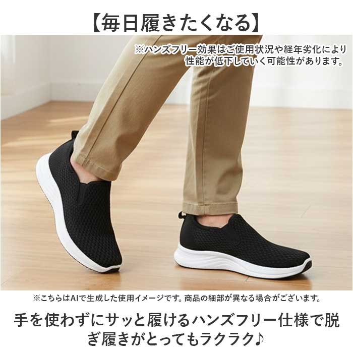 ・手を使わずにサッと履けるハンズフリー仕様で脱ぎ履きがとってもラクラク♪(※ハンズフリー効果はご使用状況や経年劣化により性能が低下していく可能性があります。)