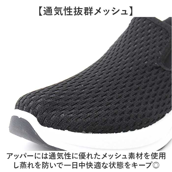 ・アッパーには通気性に優れたメッシュ素材を使用し蒸れを防いで一日中快適な状態をキープ◎