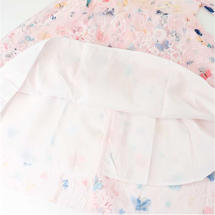 ・ふんわり広がるスカートラインが動くたびに揺れて可愛さを引き立てる。