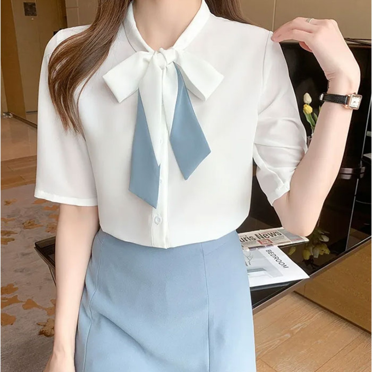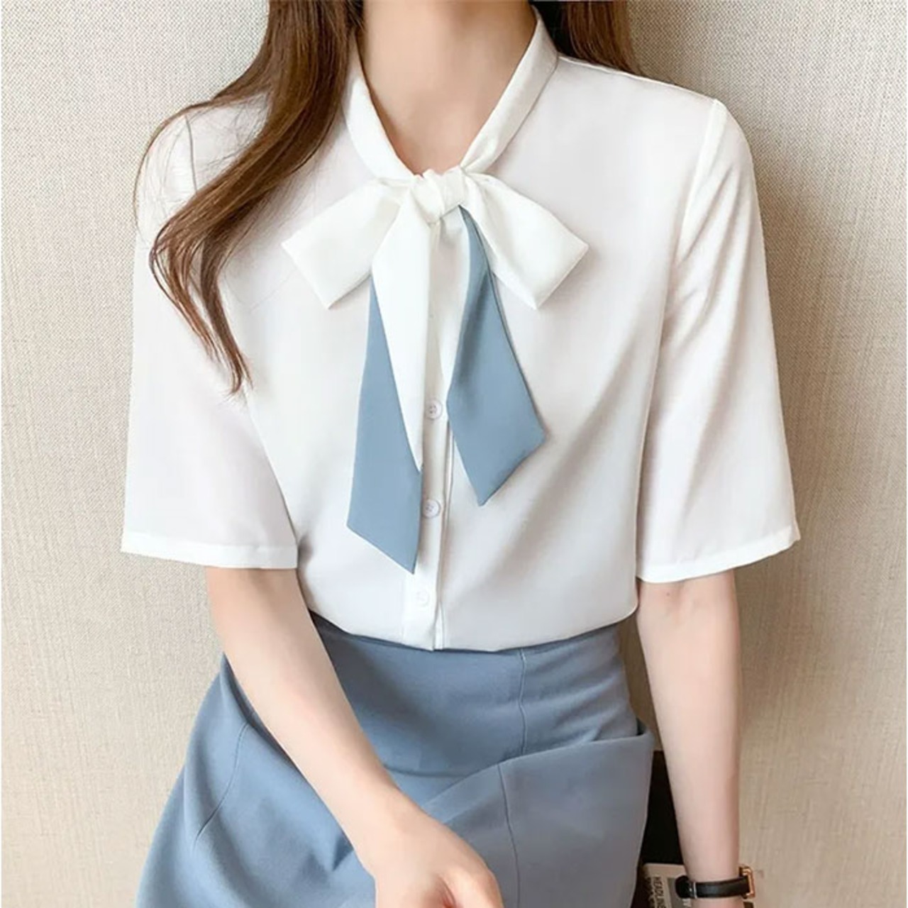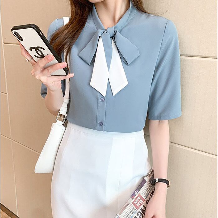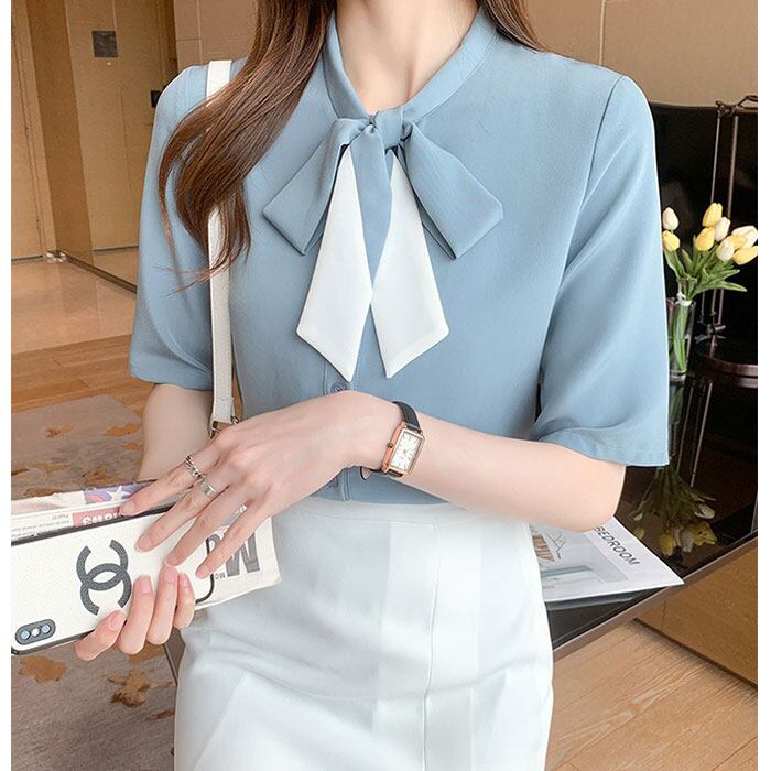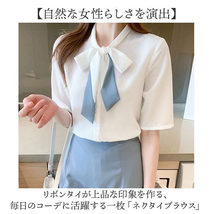 ・リボンタイが上品な印象を作る、毎日のコーデに活躍する一枚「ネクタイブラウス」