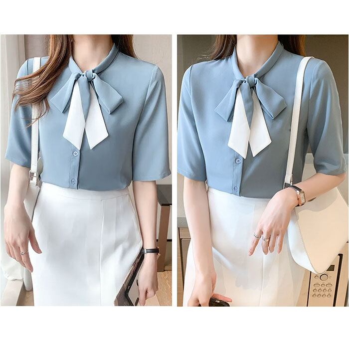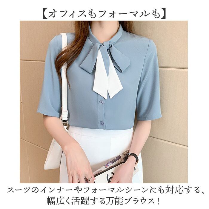 ・スーツのインナーやフォーマルシーンにも対応する、幅広く活躍する万能ブラウス!