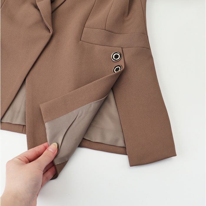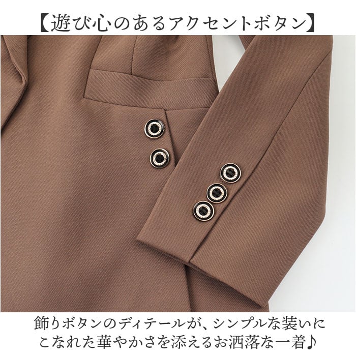 【遊び心のあるアクセントボタン】 飾りボタンのディテールが、シンプルな装いにこなれた華やかさを添えるお洒落な一着♪