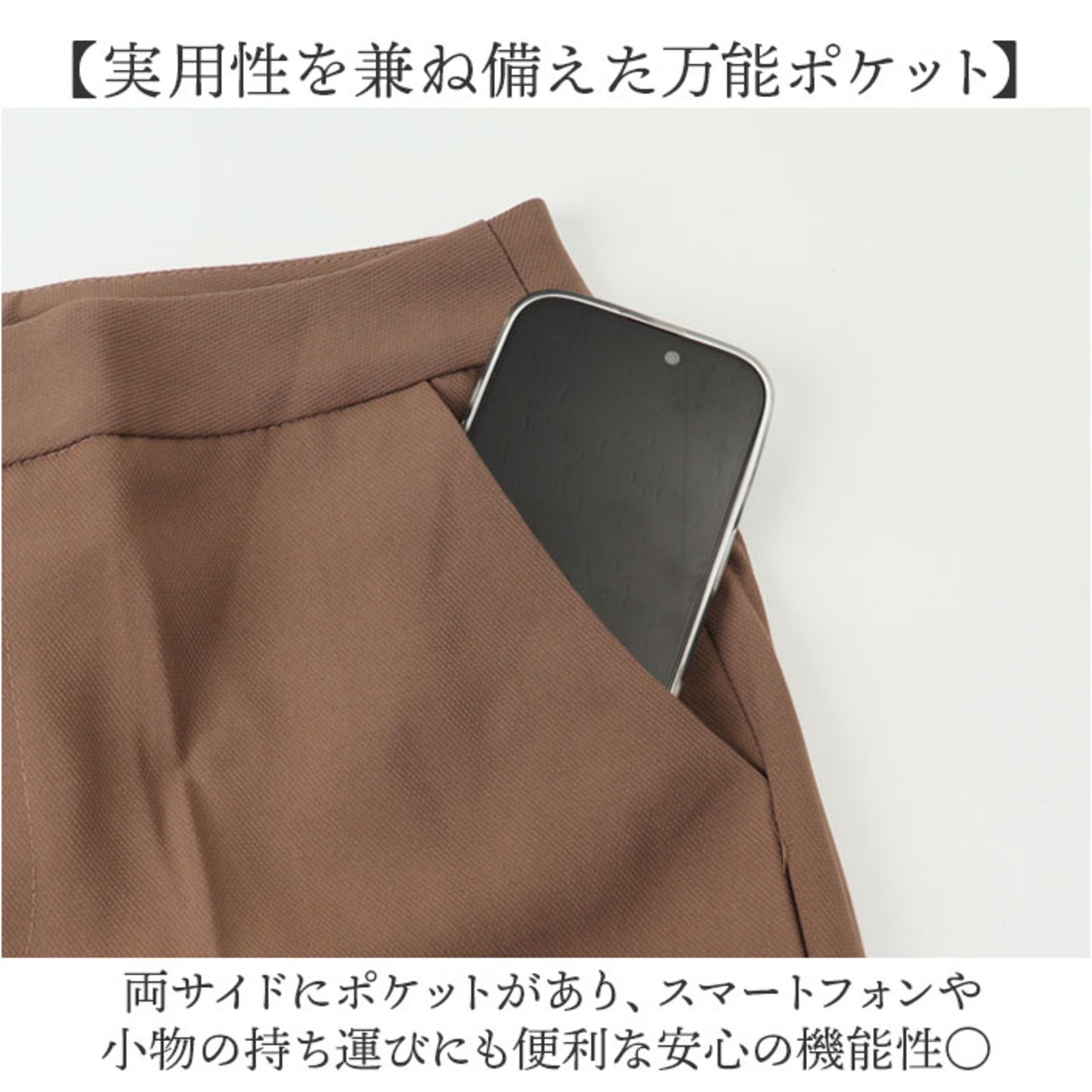 【実用性を兼ね備えた万能ポケット】 両サイドにポケットがあり、スマートフォンや小物の持ち運びにも便利な安心の機能性〇
