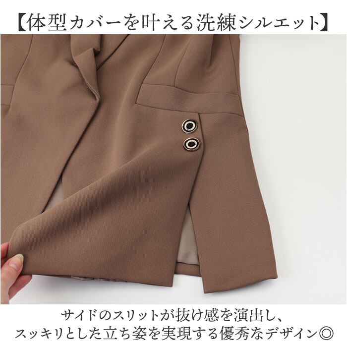 【体型カバーを叶える洗練シルエット】 サイドのスリットが抜け感を演出し、スッキリとした立ち姿を実現する優秀なデザイン◎