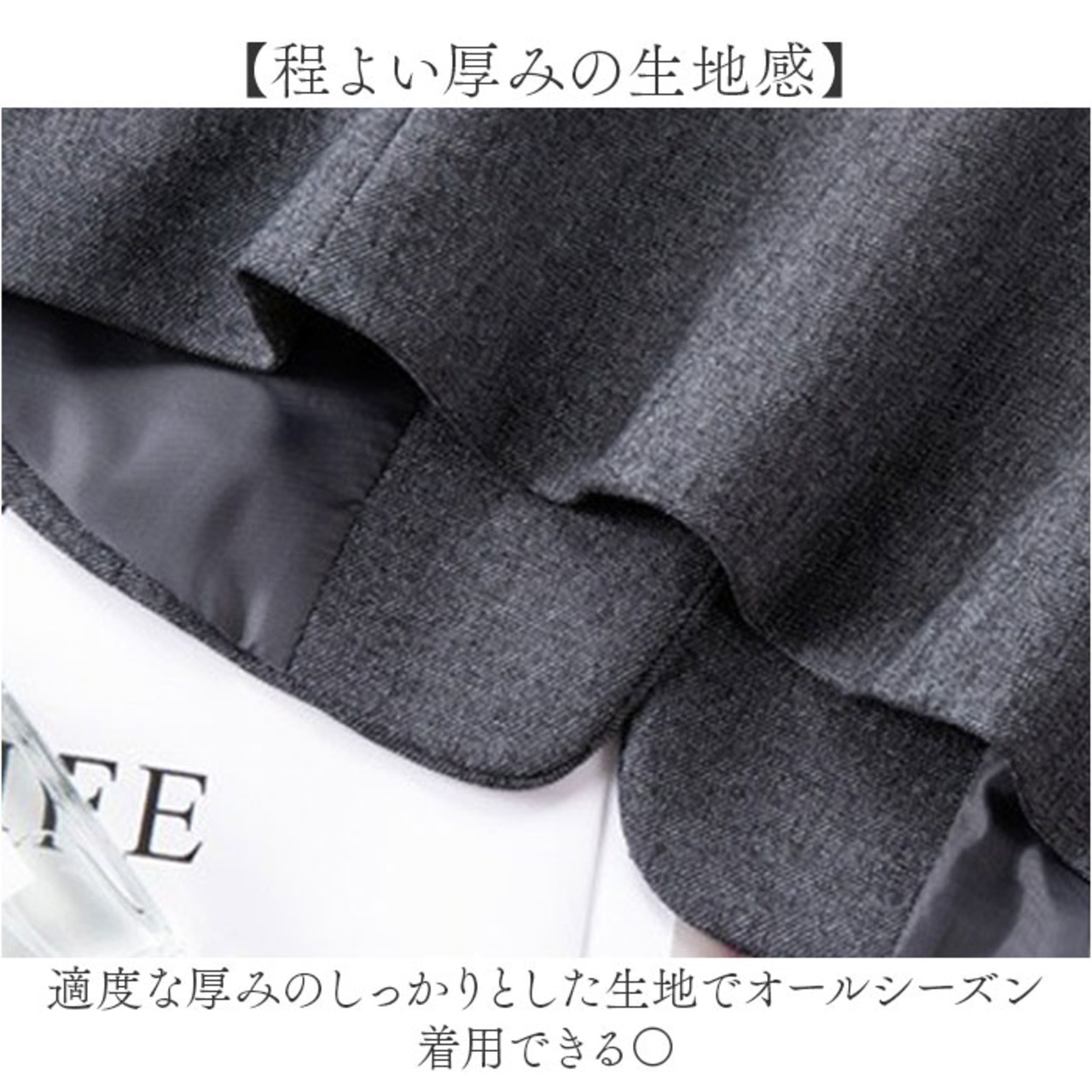 ・適度な厚みのしっかりとした生地でオールシーズン着用できる〇