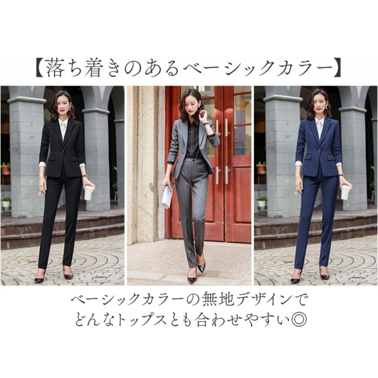 ・オフィスからセレモニーまで幅広く活躍する万能パンツスーツ。