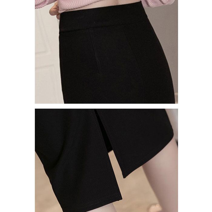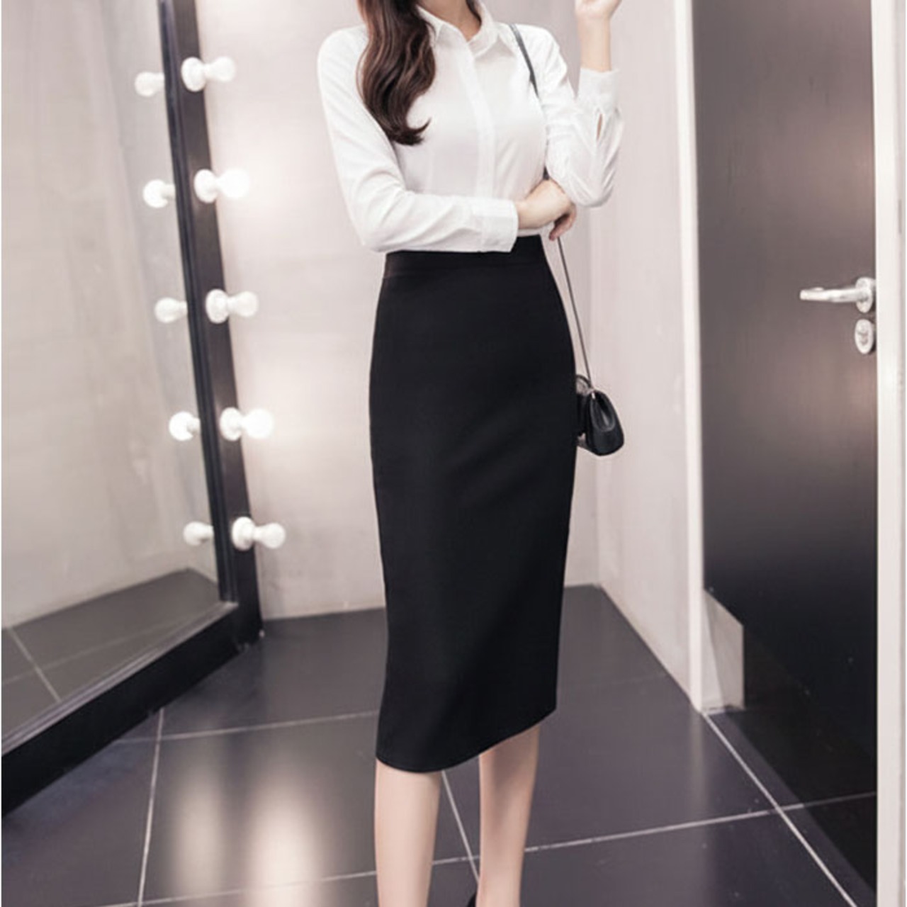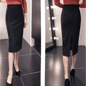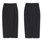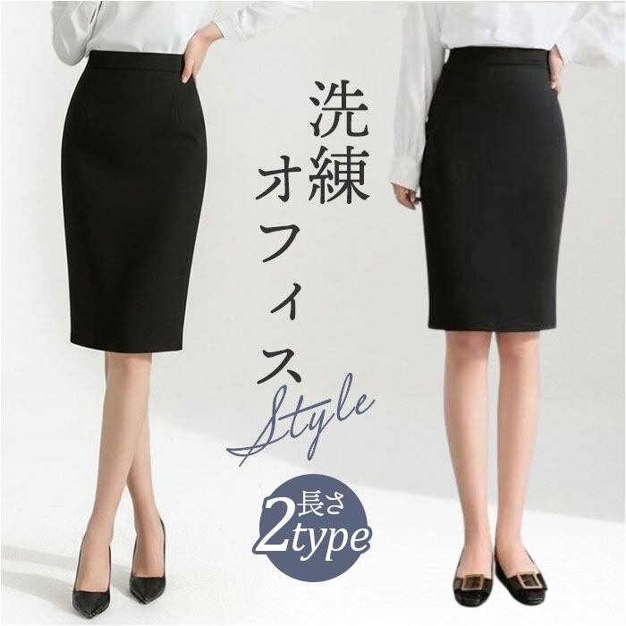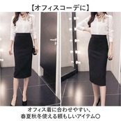 ・ハイウエストで脚長効果が叶う、オフィスにもぴったりなタイトスカート。