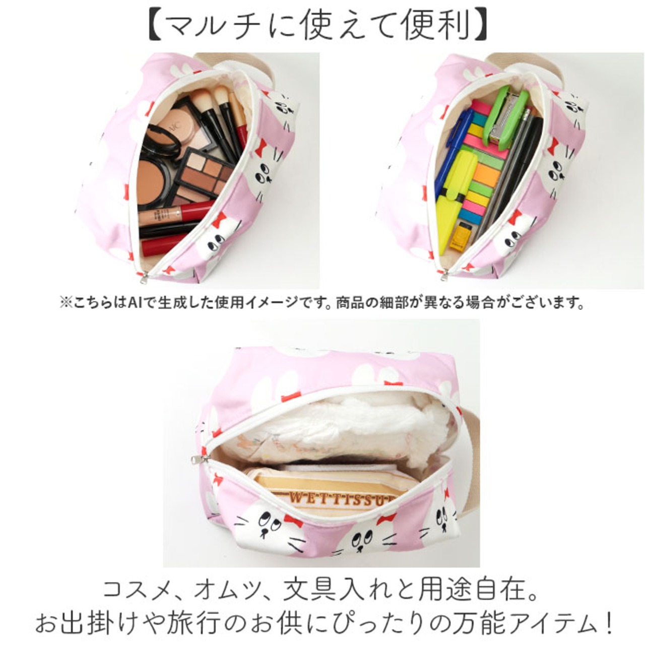 ・コスメ、オムツ、文具入れと用途自在。お出掛けや旅行のお供にぴったりの万能アイテム!