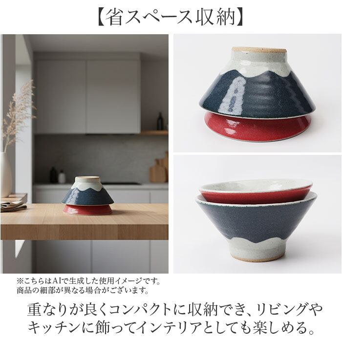 ・青富士と赤富士を見立てた絵柄と優しい色合いが上品で美しい〇※陶器・磁器商品の特性で黒点や色むらなどがございます。ひとつひとつのうつわの持つ個性、温かみある風合いとしてお楽しみください。