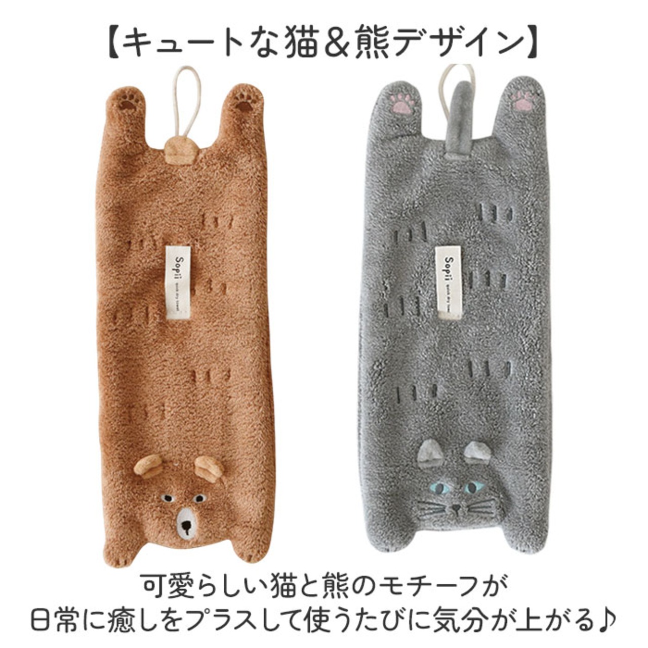 ・しっかりとした厚手の生地だから、髪の毛だけでなくペットも優しくしっかり拭ける〇