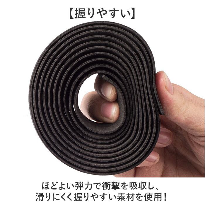 ・ほどよい弾力で衝撃を吸収し、滑りにくく握りやすい素材を使用!