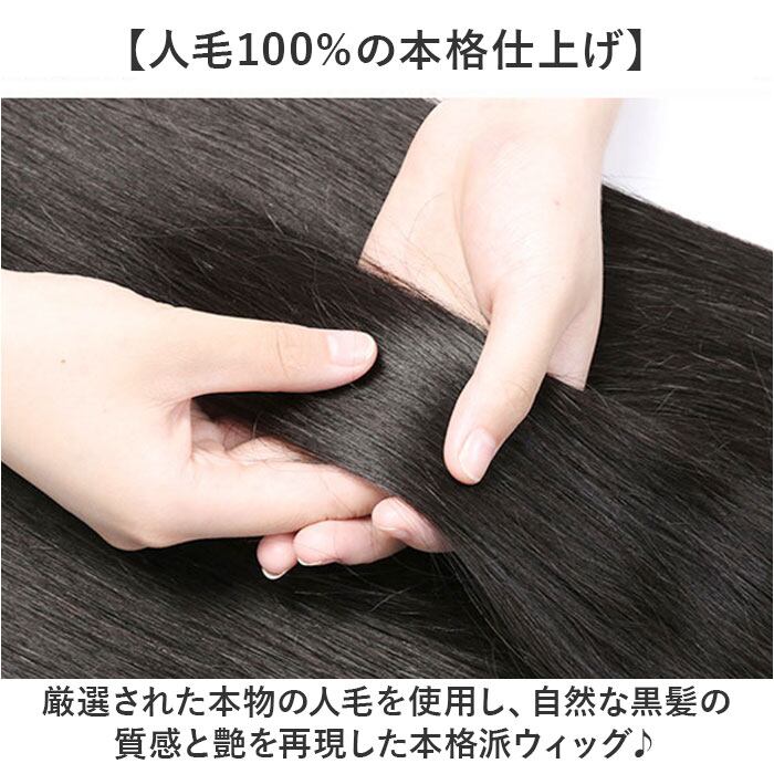 ・厳選された本物の人毛を使用し、自然な黒髪の質感と艶を再現した本格派ウィッグ♪
