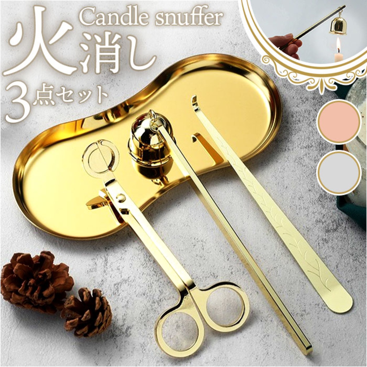 キャンドル 火消し 通販 スナッファー ろうそく消し ロウソク消し ローソク消し ローソク火消し キャンドルスナッファー candle snuffer 3点セット アロマキャンドル ローソク 蝋燭 家庭用 仏壇用 インテリア おしゃれ