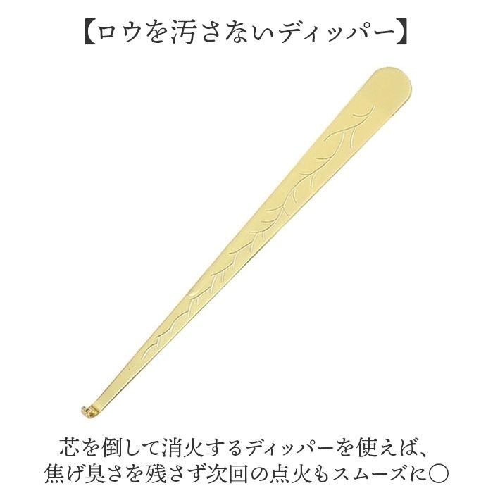 【ロウを汚さないディッパー】 芯を倒して消火するディッパーを使えば、焦げ臭さを残さず次回の点火もスムーズに〇