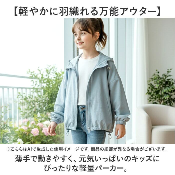 【軽やかに羽織れる万能アウター】 薄手で動きやすく、元気いっぱいのキッズにぴったりな軽量パーカー。