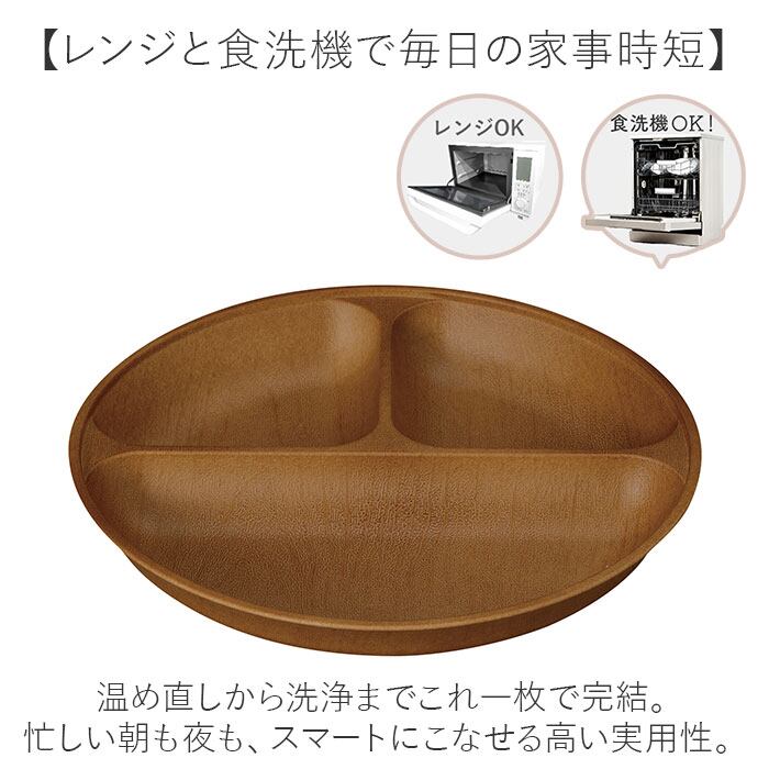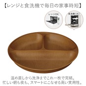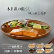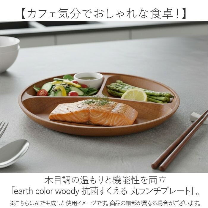 【カフェ気分でおしゃれな食卓!】 木目調の温もりと機能性を両立「earth color woody 抗菌すくえる 丸ランチプレート」。