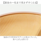【最後の一粒まで残さずすくえる】 独自のフチ形状がスプーンに程よくフィット。食べこぼしを防ぐ◎