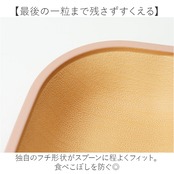 【最後の一粒まで残さずすくえる】 独自のフチ形状がスプーンに程よくフィット。食べこぼしを防ぐ◎