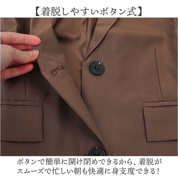 ・ボタンで簡単に開け閉めできるから、着脱がスムーズで忙しい朝も快適に身支度できる!