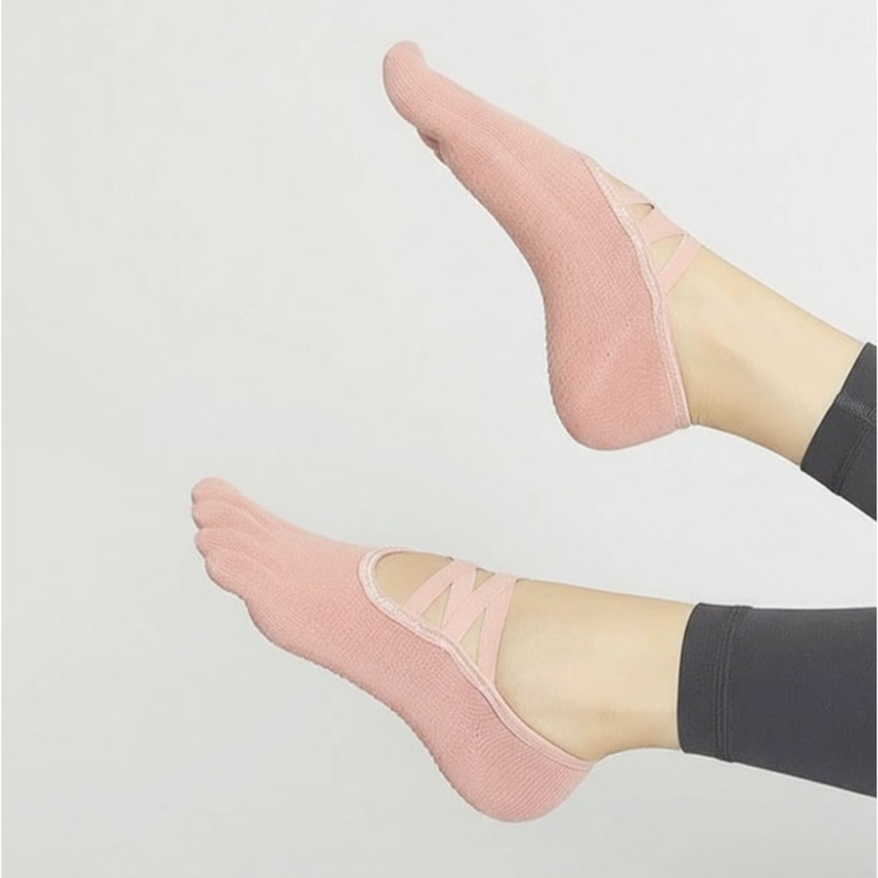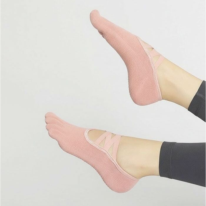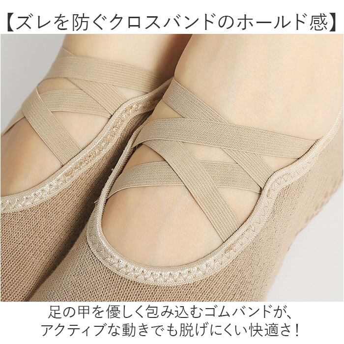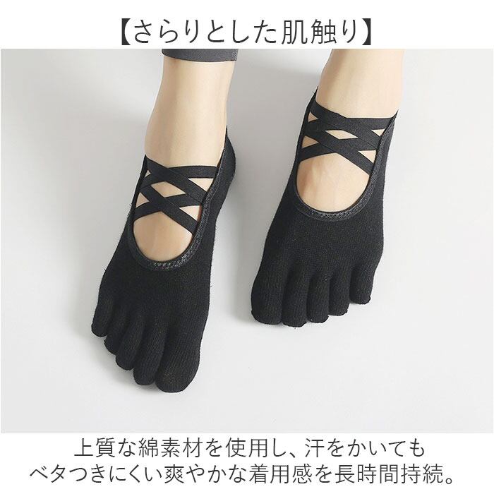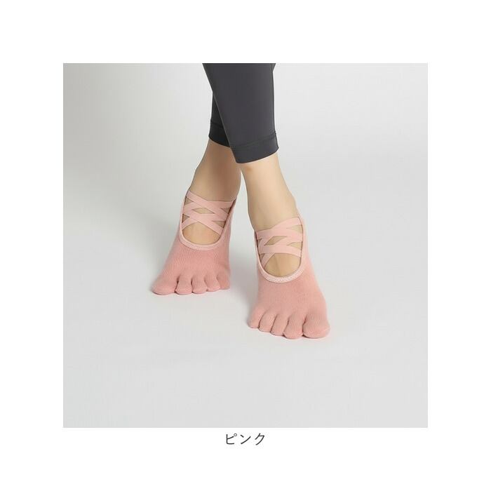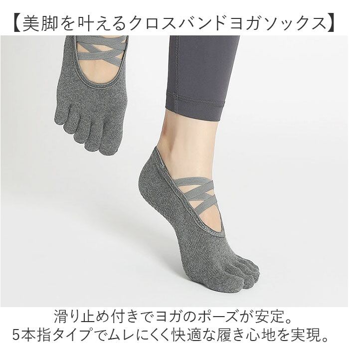 【美脚を叶えるクロスバンドヨガソックス】 滑り止め付きでヨガのポーズが安定。5本指タイプでムレにくく快適な履き心地を実現。