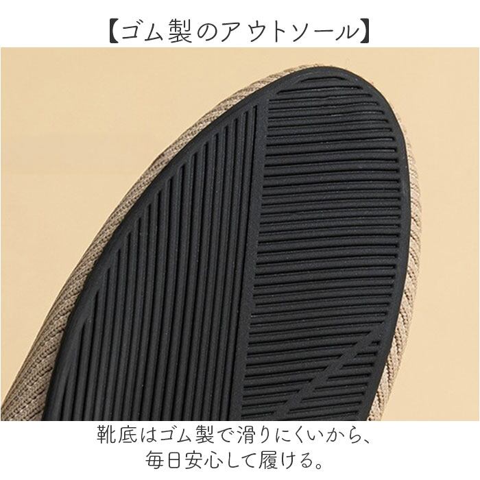 ・靴底はゴム製で滑りにくいから、毎日安心して履ける。