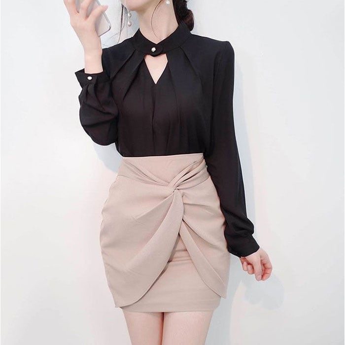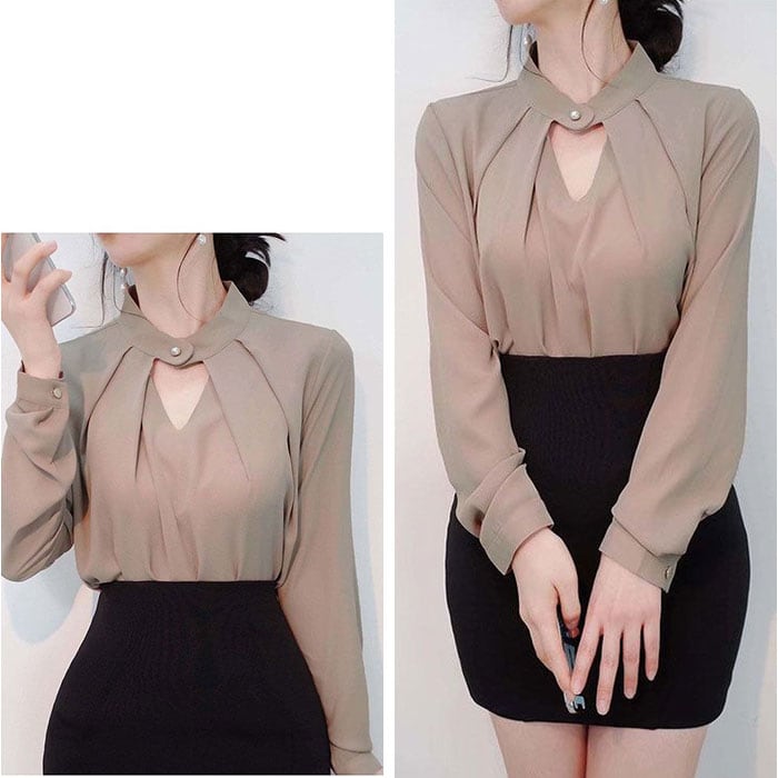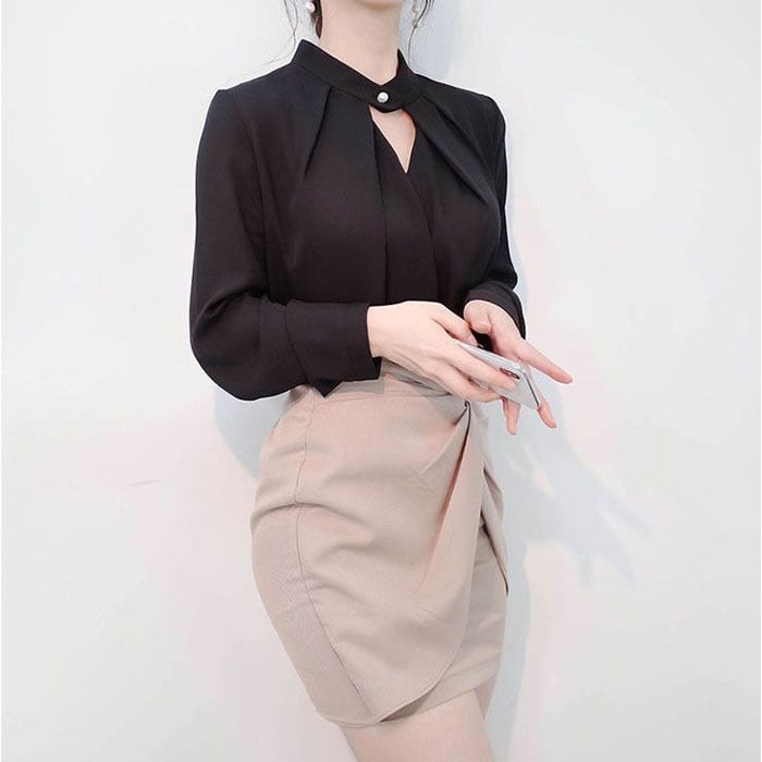 ・スタンドネックとカットアウトで、程よい肌見せがコーデに洗練された印象をプラス。