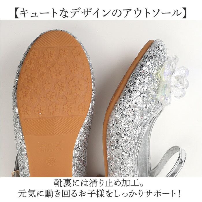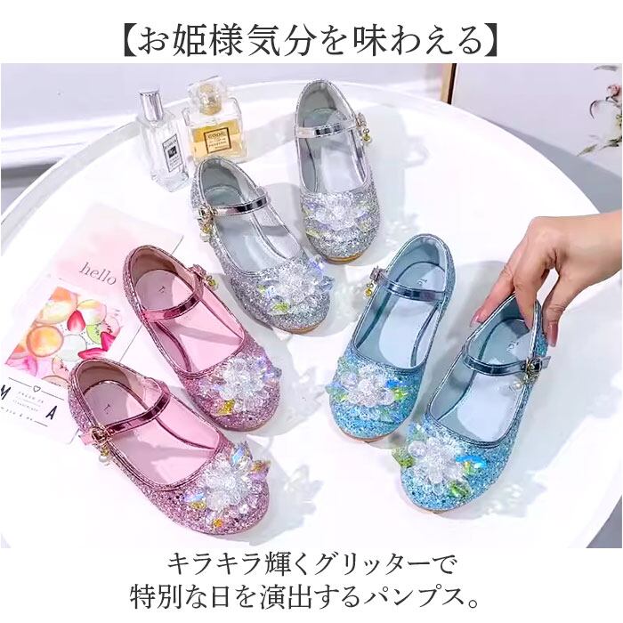 ・キラキラ輝くグリッターで特別な日を演出するパンプス。