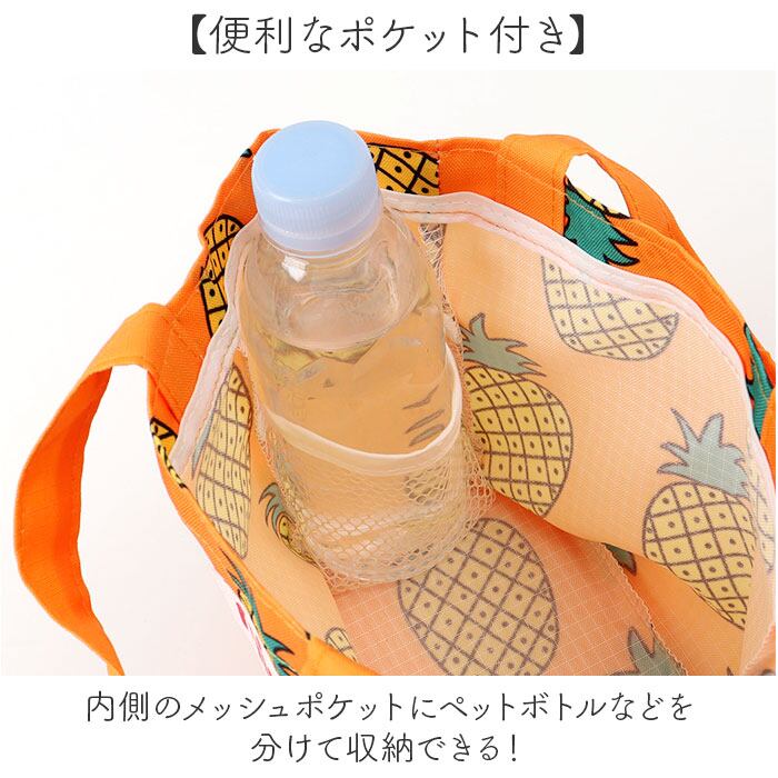 ・内側のメッシュポケットにペットボトルなどを分けて収納できる!