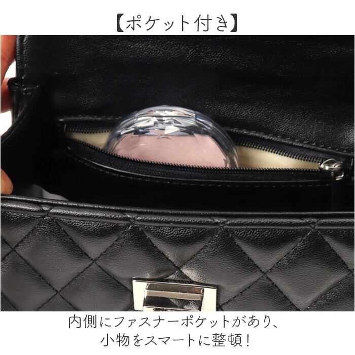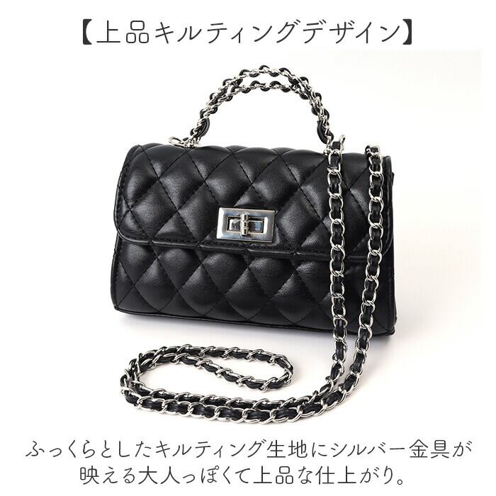 ・ふっくらとしたキルティング生地にシルバー金具が映える大人っぽくて上品な仕上がり。
