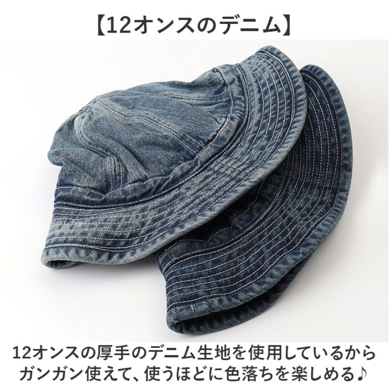 12オンスの厚手のデニム生地を使用しているからガンガン使えて、使うほどに自分仕様の色落ちを楽しめる♪