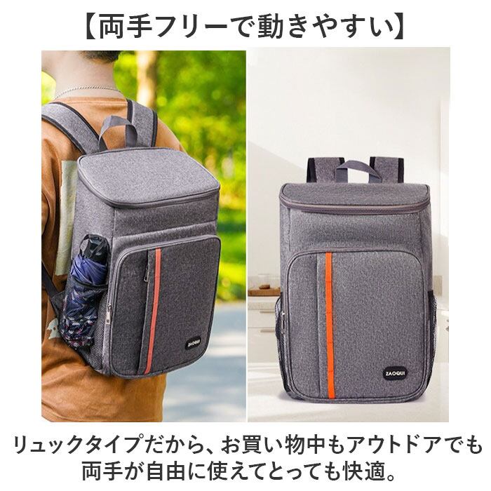 ・リュックタイプだから、お買い物中もアウトドアでも両手が自由に使えてとっても快適。
