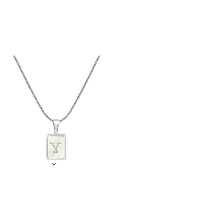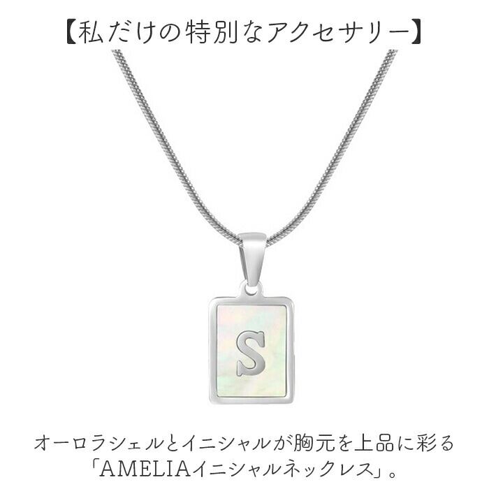 ・オーロラシェルとイニシャルが胸元を上品に彩る「AMELIAイニシャルネックレス」。
