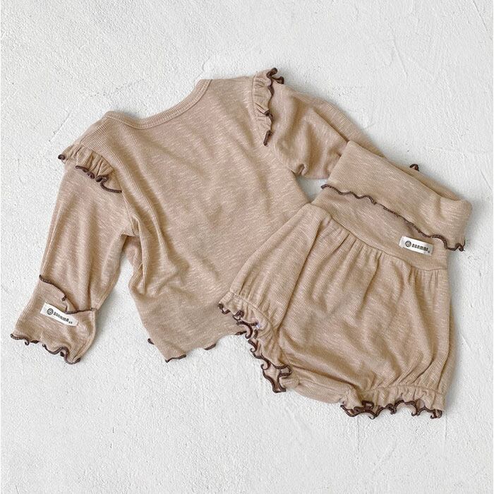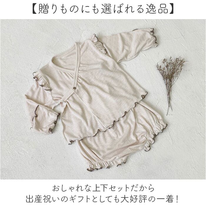 ・おしゃれな上下セットだから出産祝いのギフトとしても大好評の一着!
