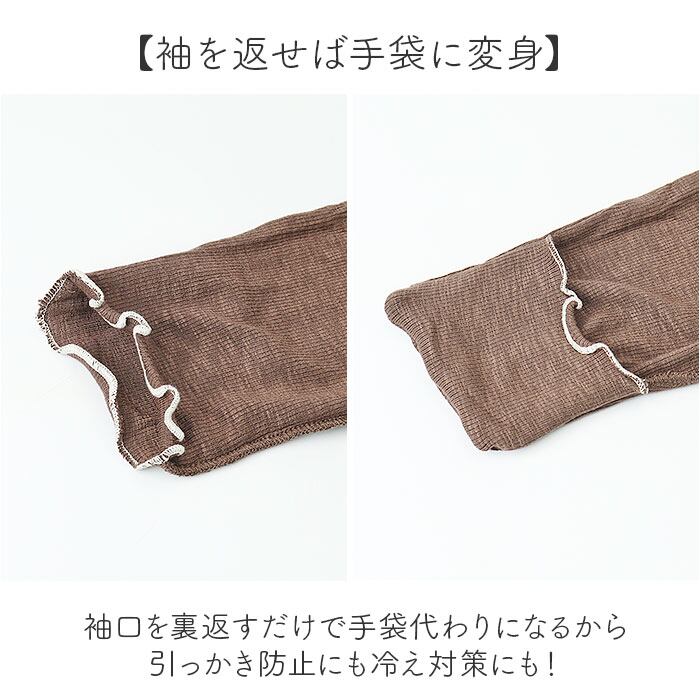 ・袖口を裏返すだけで手袋代わりになるから引っかき防止にも冷え対策にも!