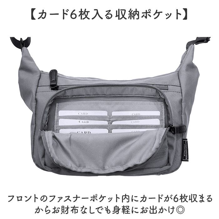 ・フロントのファスナーポケット内にカードが6枚収まるからお財布なしでも身軽にお出かけ◎