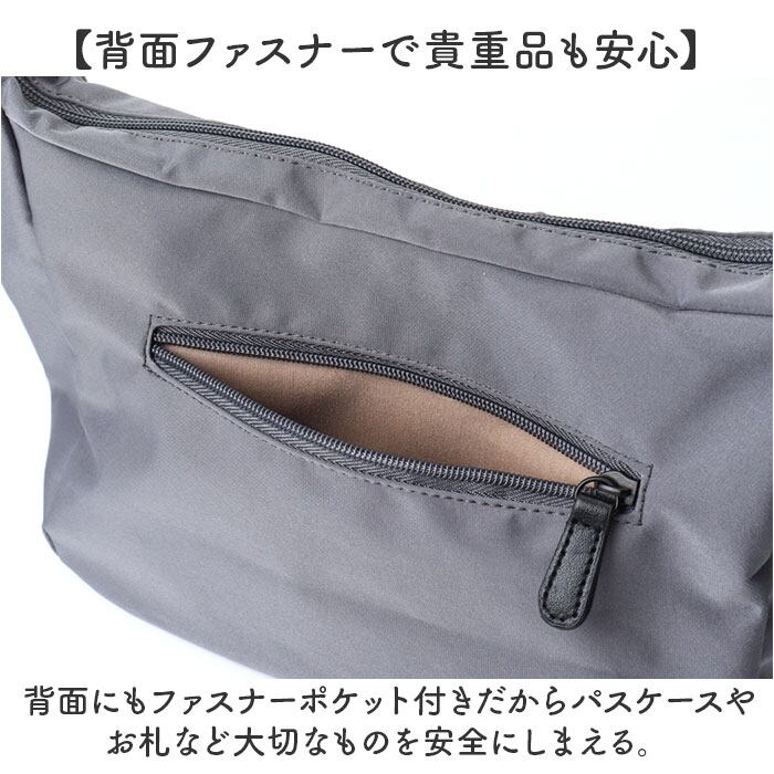 ・背面にもファスナーポケット付きだからパスケースやお札など大切なものを安全にしまえる。