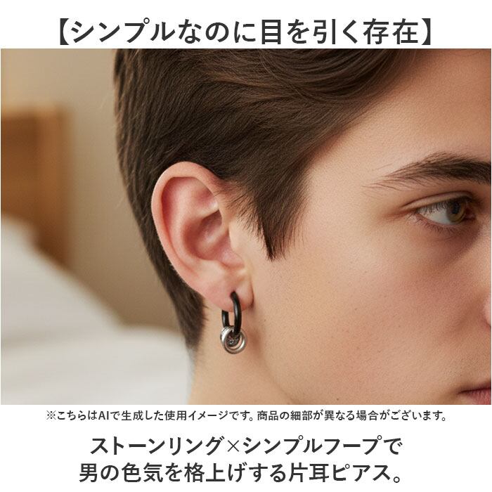 ・ストーンリング×シンプルフープで男の色気を格上げする片耳ピアス。