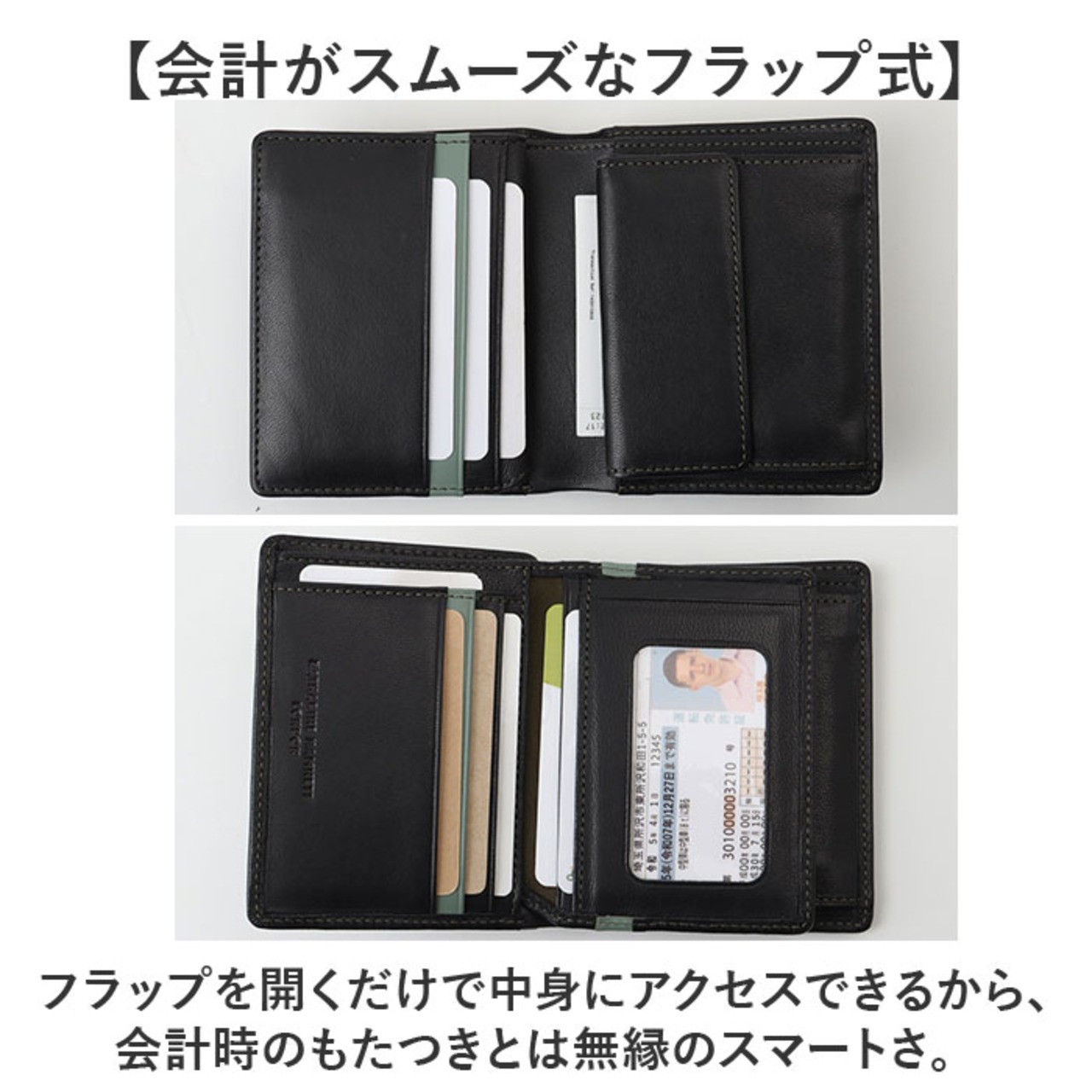 ・フラップを開くだけで中身にアクセスできるから、会計時のもたつきとは無縁のスマートさ。